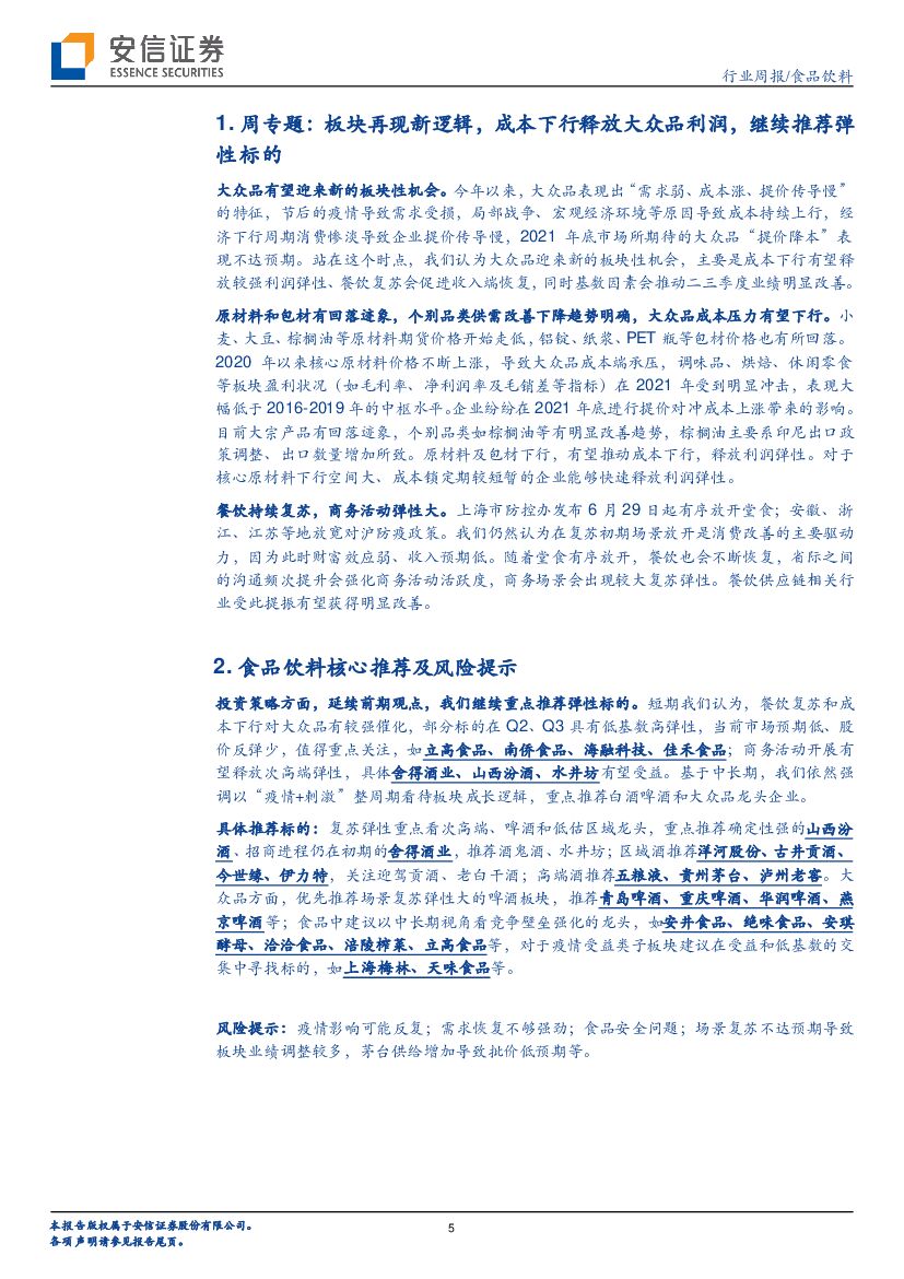 安信证券:食品饮料周专题—板块再现新逻辑,成本下行释放大众品利润,继续推荐弹性标的.pdf