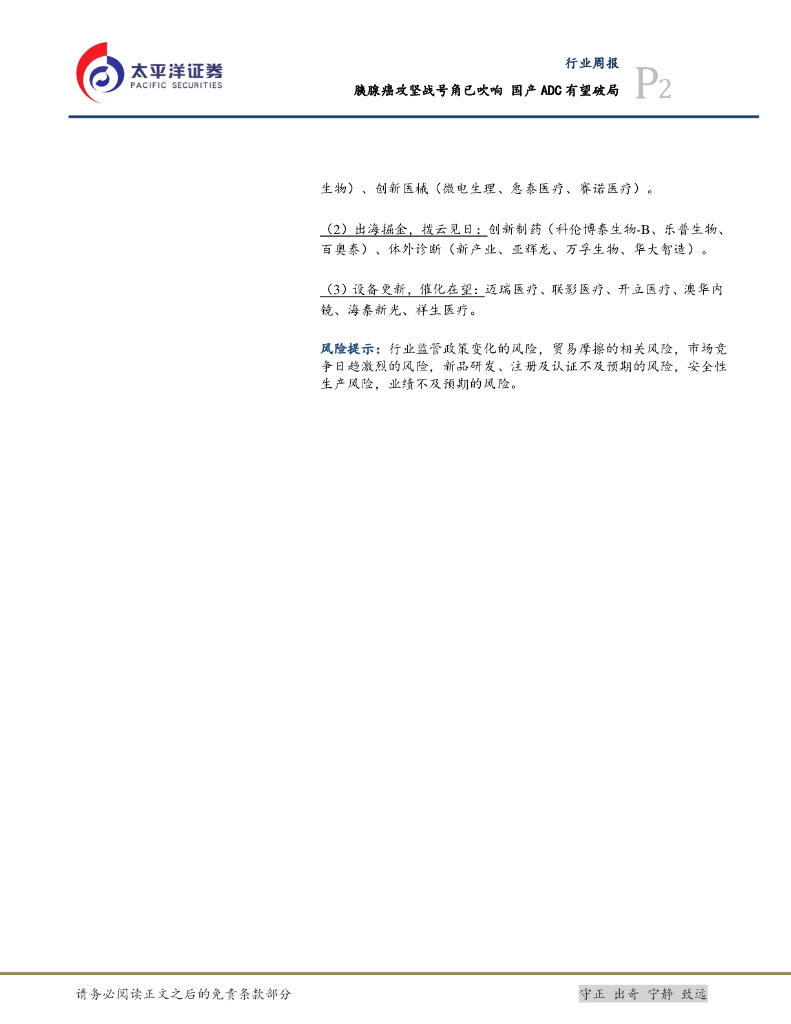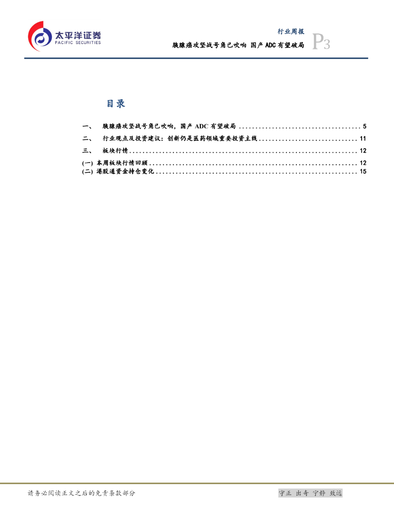 太平洋证券:医药行业周报:胰腺癌攻坚战号角已吹响,国产ADC有望破局.pdf