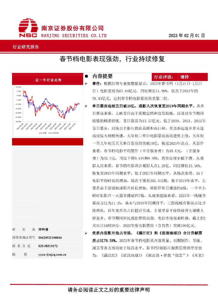 南京证券:传媒行业研究报告:春节档电影表现强劲,行业持续修复.pdf