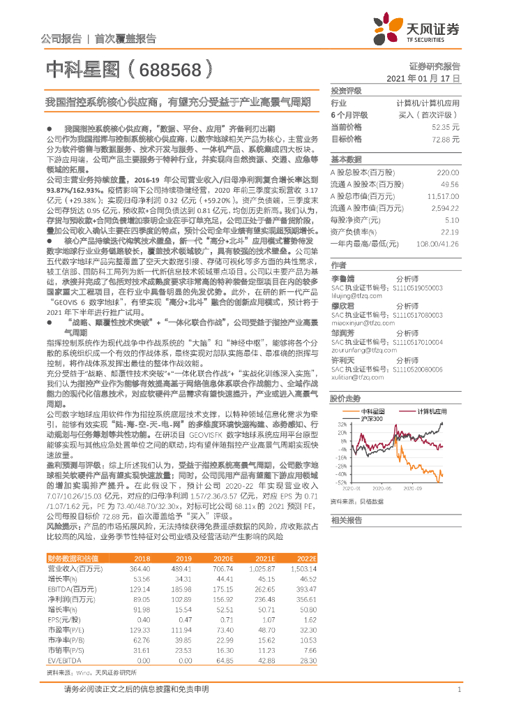 天风证券:中科星图(688568)-我国指控系统核心供应商,有望充分受益于产业高景气周期.pdf