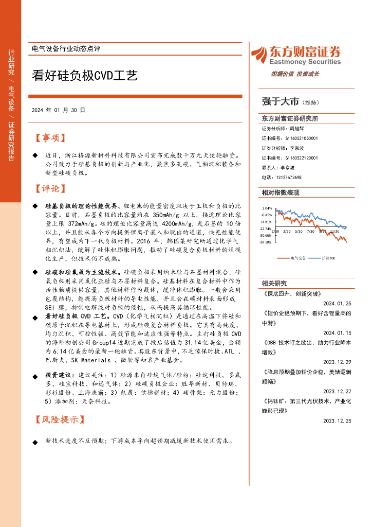 东方财富证券:电气设备行业动态点评:看好硅负极CVD工艺.pdf
