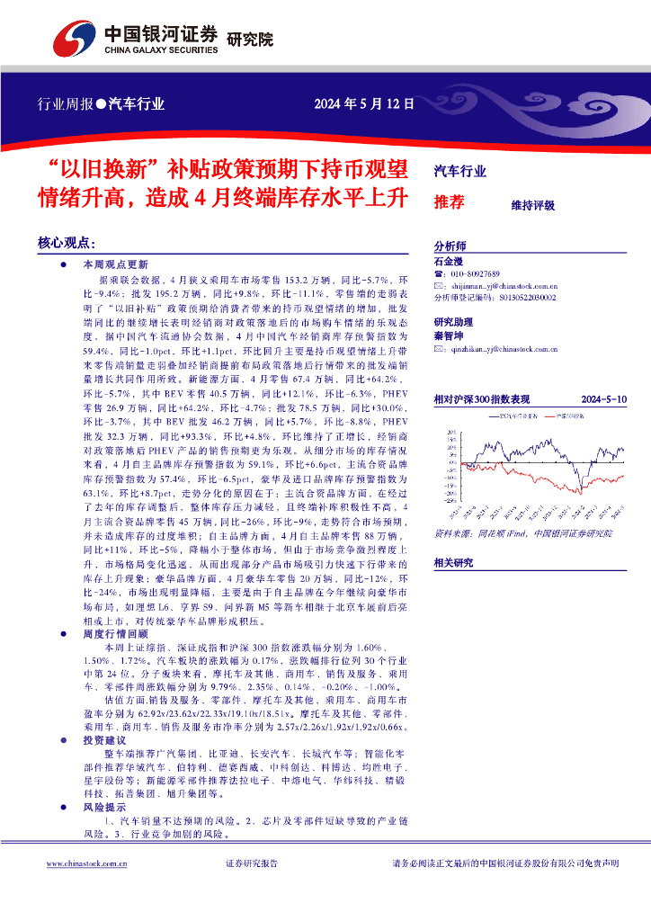 中国银河:汽车行业行业周报:“以旧换新”补贴政策预期下持币观望情绪升高,造成4月终端库存水平上升.pdf