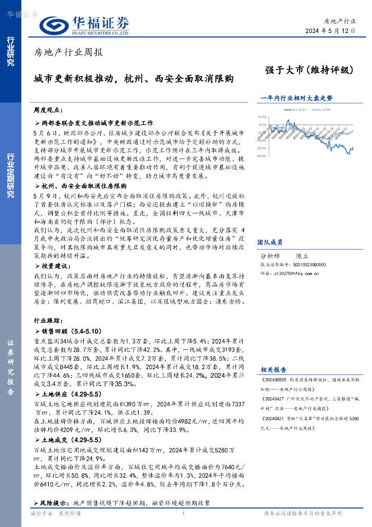 华福证券:房地产行业周报:城市更新积极推动,杭州、西安全面取消限购.pdf