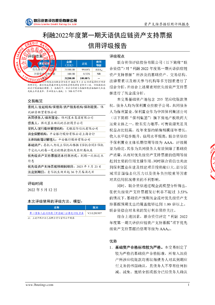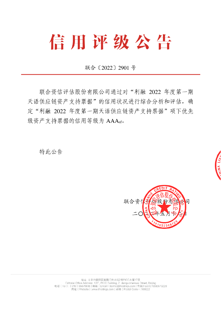 联合资信:利融2022年度第一期天语供应链资产支持票据信用评级报告.pdf