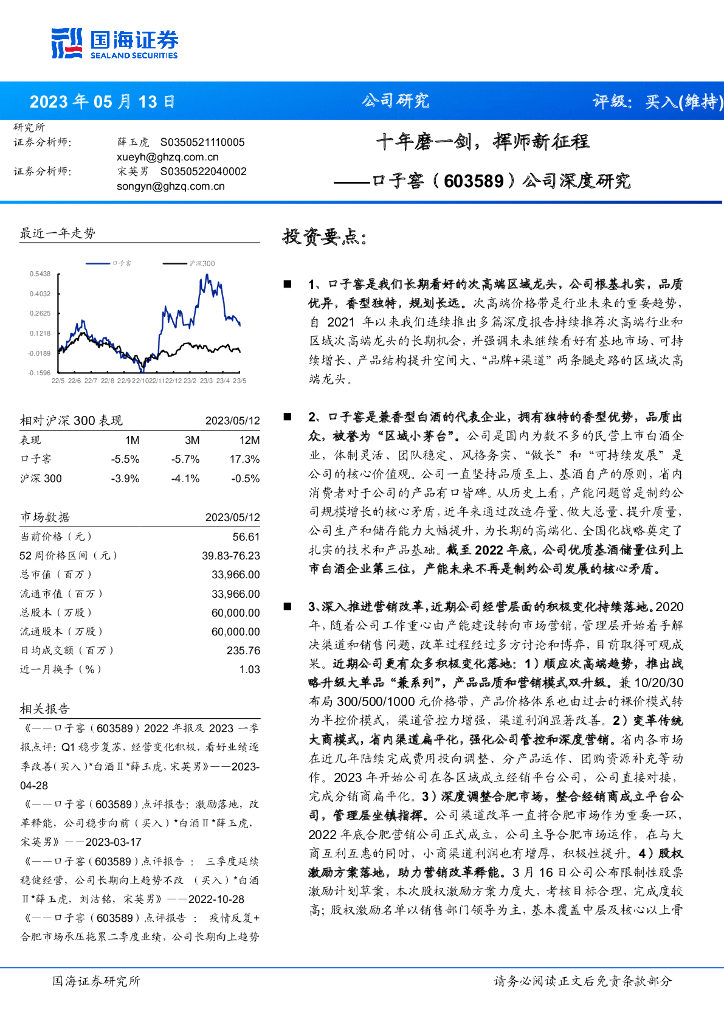 国海证券:口子窖(603589)-公司深度研究:十年磨一剑,挥师新征程.pdf