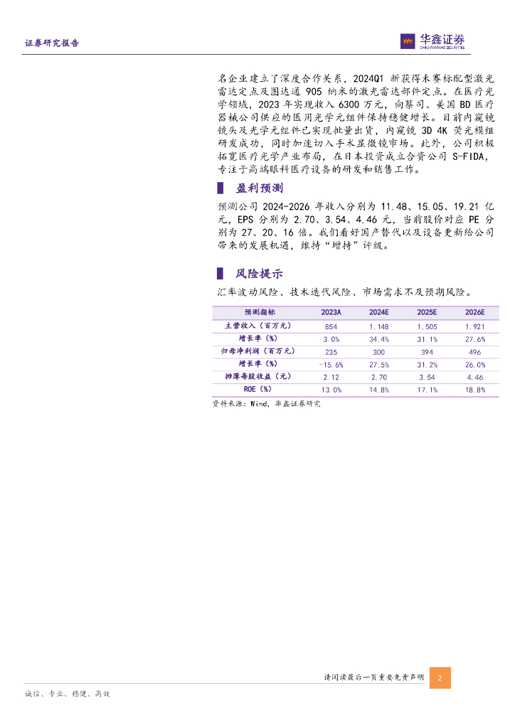 华鑫证券:永新光学(603297)-公司事件点评报告:2024Q1稳步增长,激光雷达&医疗业务成长可期.pdf