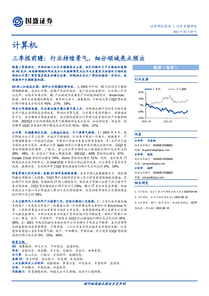 国盛证券:计算机三季报前瞻:行业持续景气,细分领域亮点频出.pdf