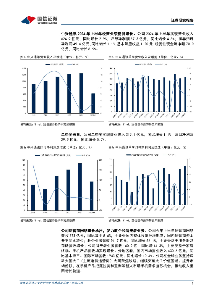 国信证券:中兴通讯(000063)-2024上半年业绩稳健增长,坚持“连接+算力”布局.pdf
