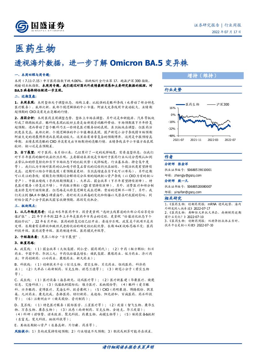 国盛证券:医药生物行业周报:透视海外数据,进一步了解Omicron BA.5变异株.pdf