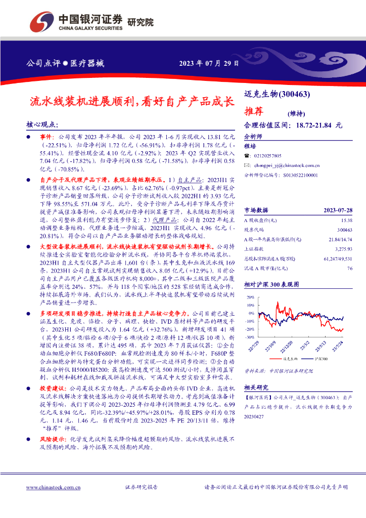 中国银河:迈克生物(300463)-流水线装机进展顺利,看好自产产品成长.pdf
