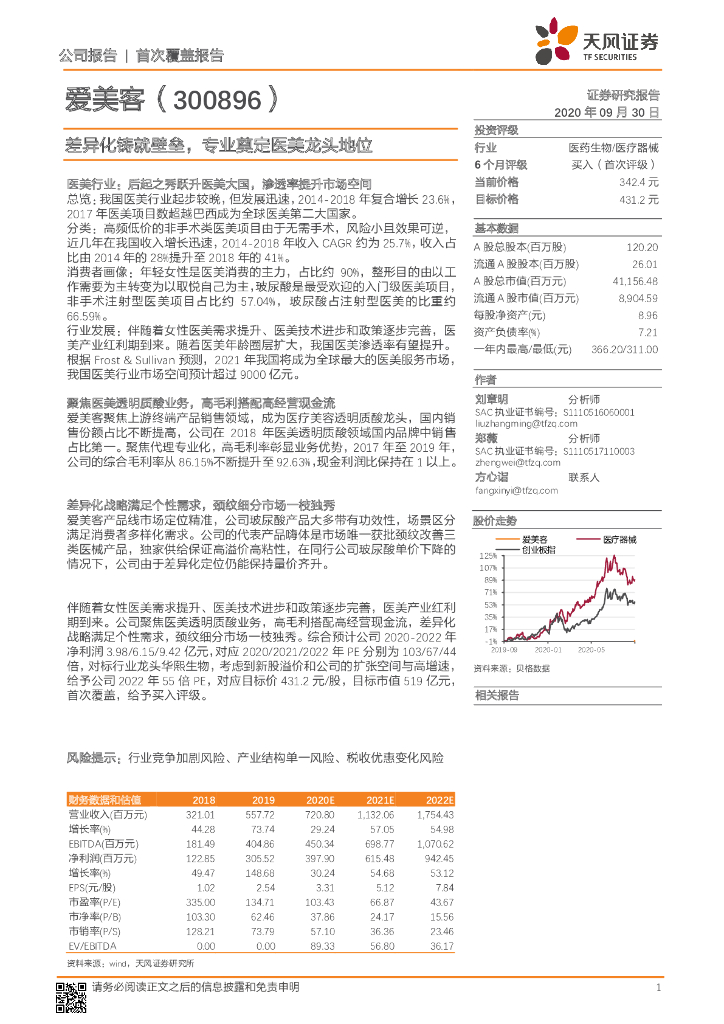 天风证券:爱美客(300896)-差异化铸就壁垒,专业奠定医美龙头地位.pdf