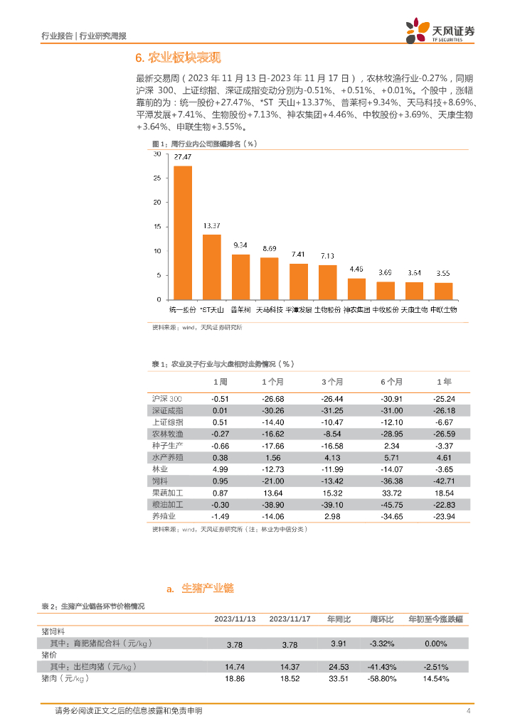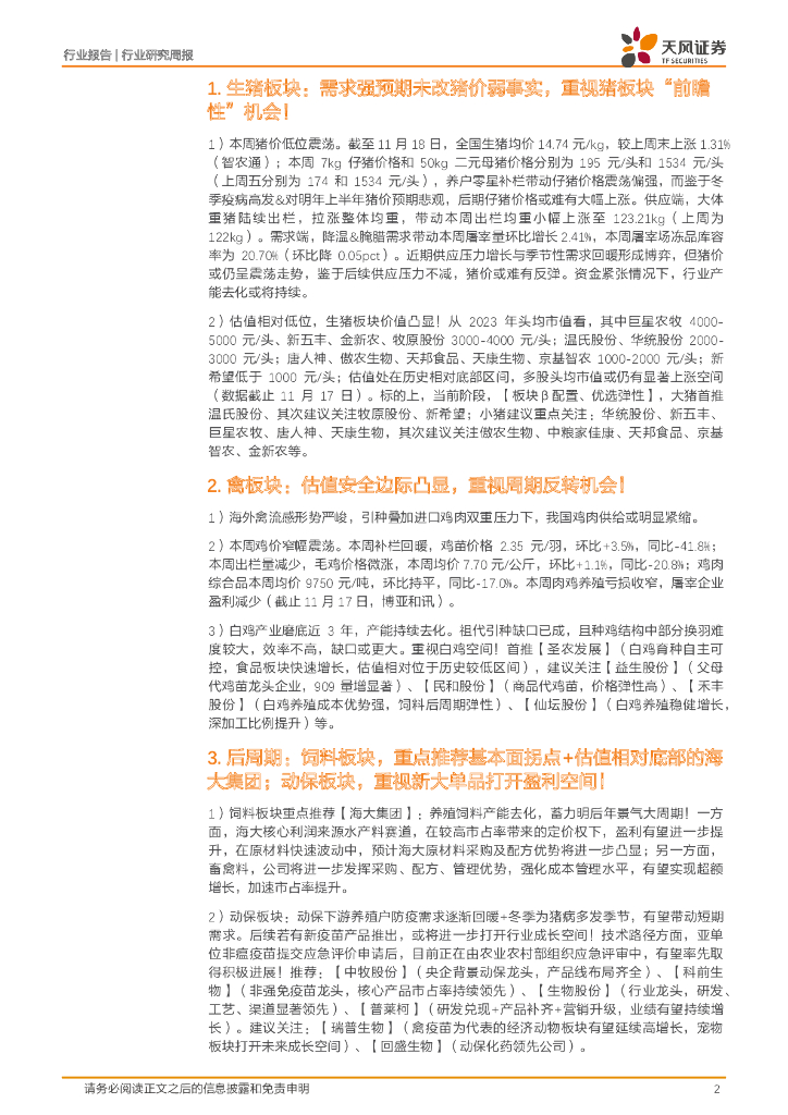 天风证券:农林牧渔2023年第46周周报:猪价低位震荡,继续推荐猪板块“前瞻性”机会!.pdf