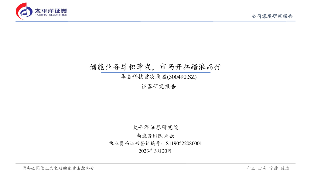 太平洋证券:华自科技(300490)-储能业务厚积薄发,市场开拓踏浪而行.pdf