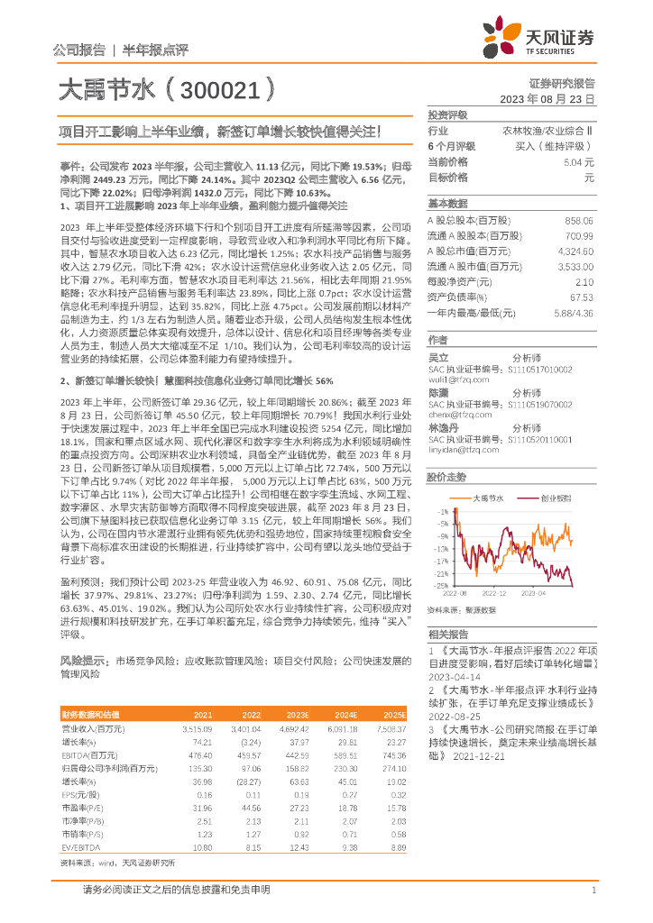天风证券:大禹节水(300021)-项目开工影响上半年业绩,新签订单增长较快值得关注!.pdf
