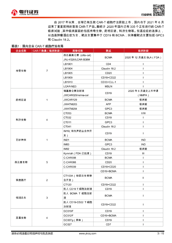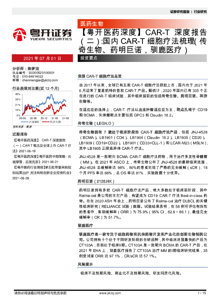粤开证券:【粤开医药深度】CAR-T深度报告(二):国内CAR-T细胞疗法梳理(传奇生物、药明巨诺,驯鹿医疗).pdf