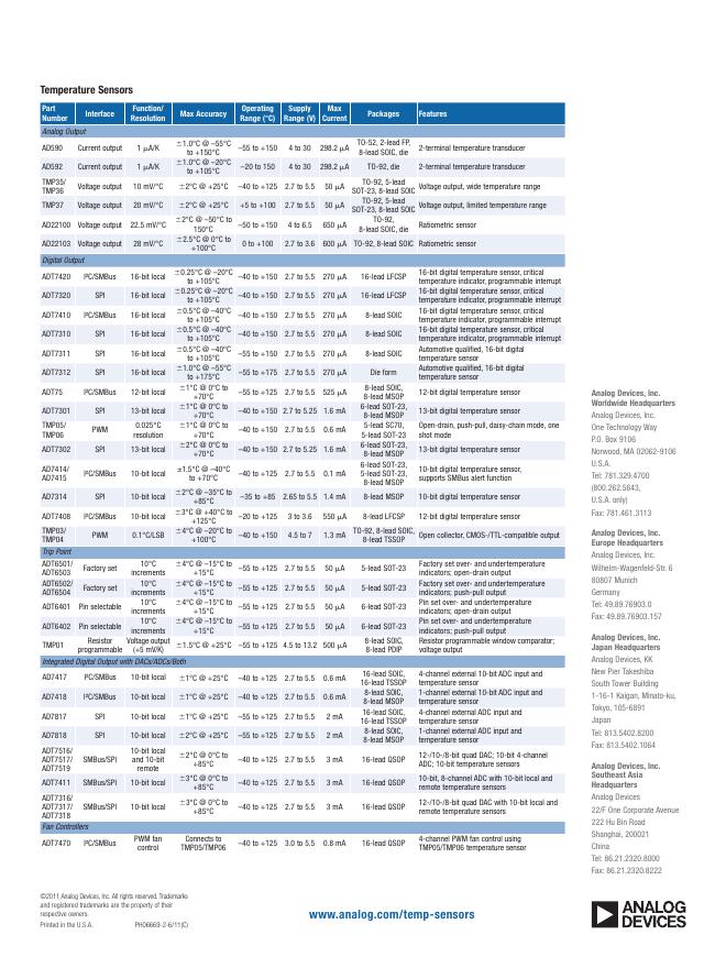 ANALOG DEVICES Selection Guide: Temperature Sensors.pdf