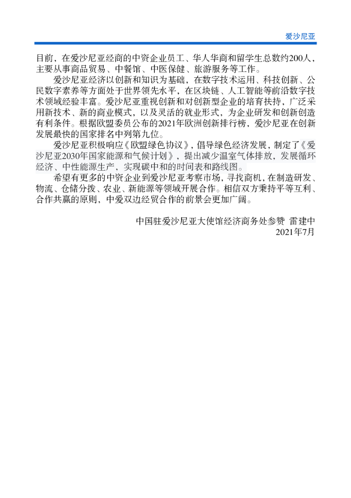 商务部:对外投资合作国别(地区)指南:爱沙尼亚(2021年版).pdf