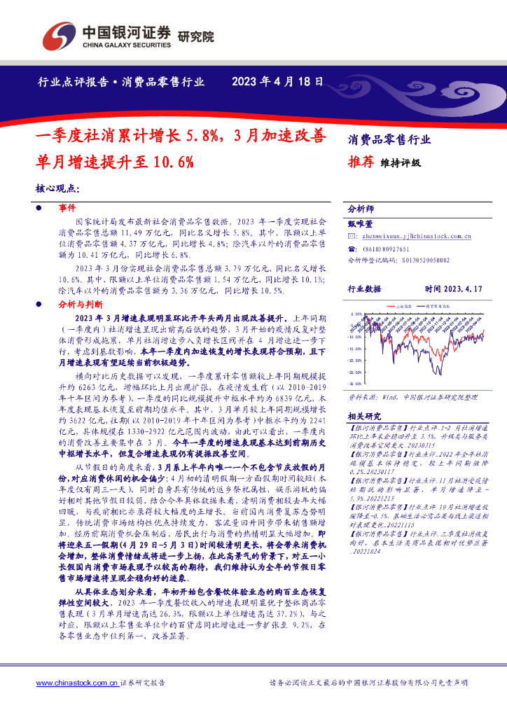 中国银河:消费品零售行业:一季度社消累计增长5.8%,3月加速改善单月增速提升至10.6%.pdf