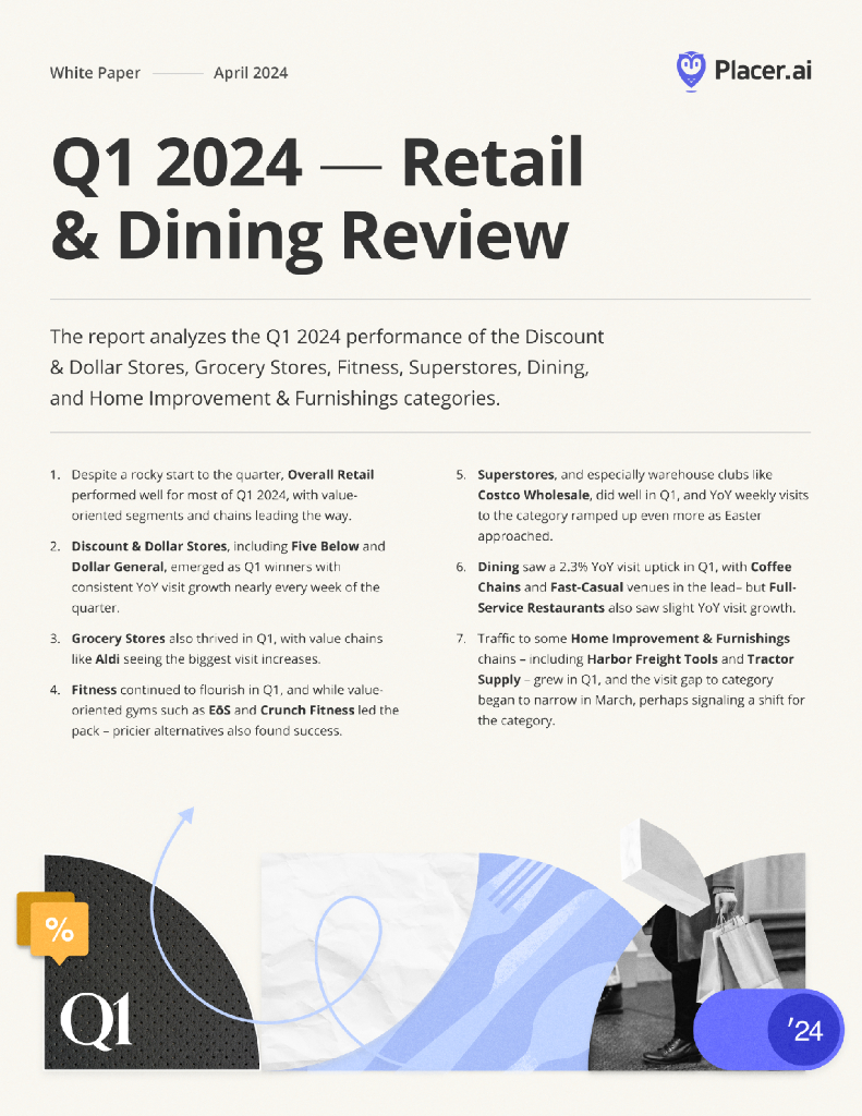 Placer.ai:2024年Q1零售及餐饮行业回顾报告-折扣和一元店、杂货店、健身、超市、餐饮和家居装修类别(英文版).pdf