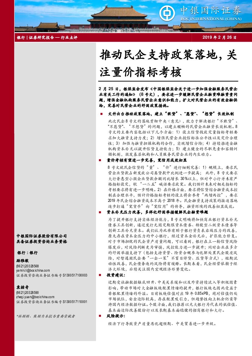 中银国际:银行行业点评 :推动民企支持政策落地,关注量价指标考核.pdf