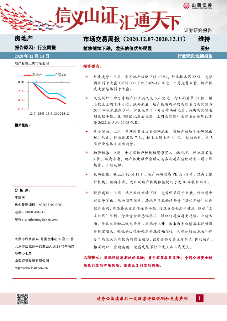 山西证券:房地产市场交易周报:板块继续下跌,龙头估值优势明显.pdf