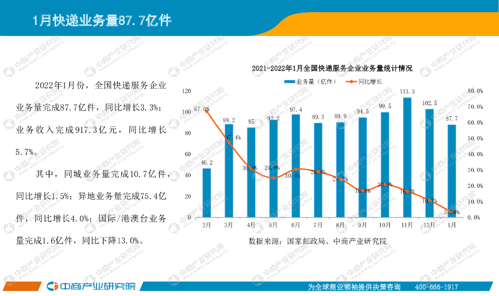 中商产业研究院:中国快递行业运行情况月度报告(2022年1月).pdf