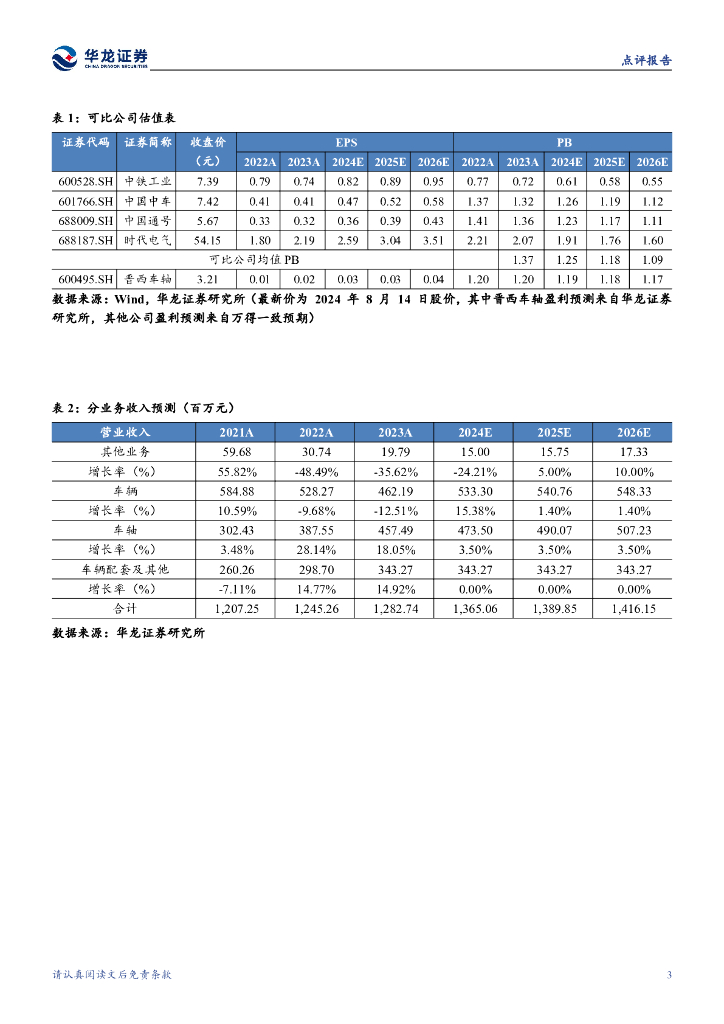 华龙证券:晋西车轴(600495)-2024年半年报点评报告:交付进程影响半年业绩,行业景气有望带动公司业绩转正.pdf