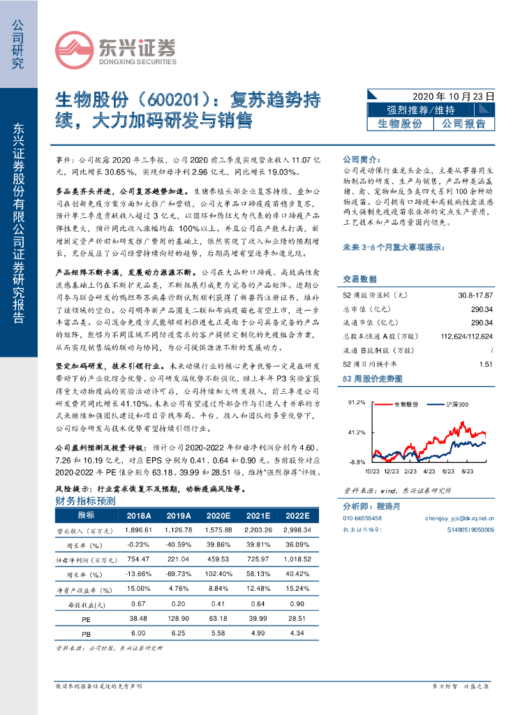 东兴证券:生物股份(600201)-复苏趋势持续,大力加码研发与销售.pdf
