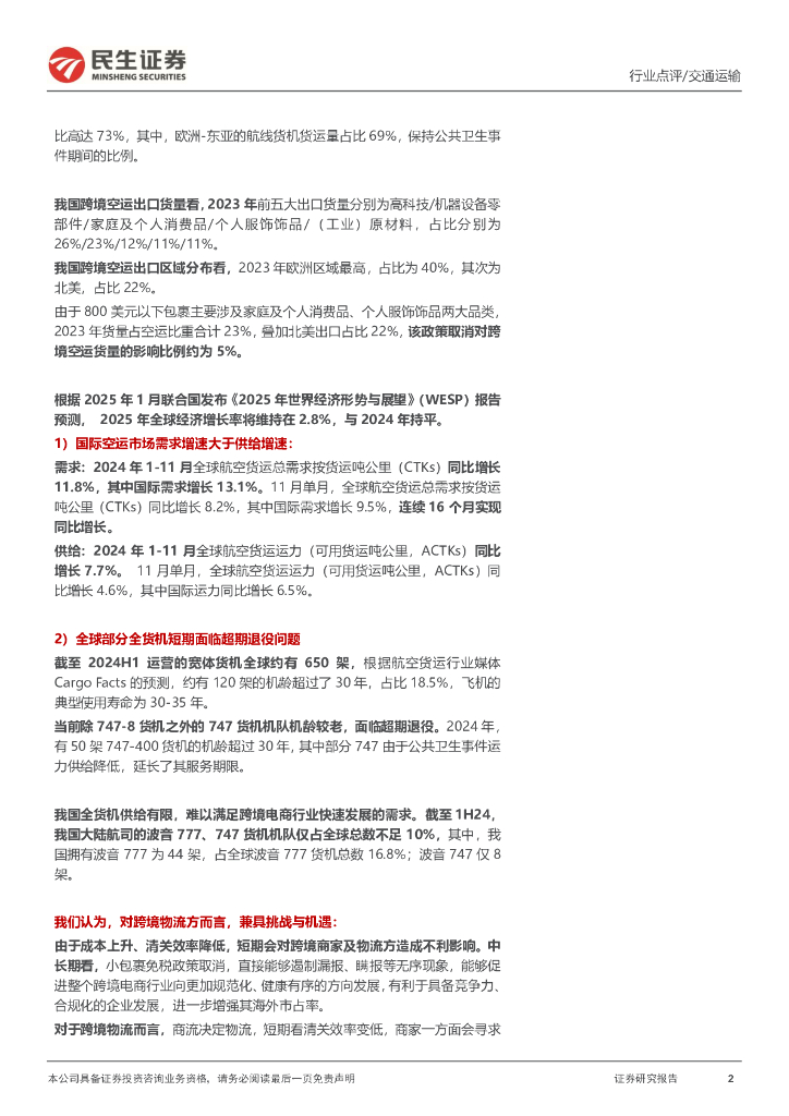 民生证券:交通运输行业事件点评:美国取消小额货物关税豁免政策,跨境空运兼具挑战和机遇.pdf