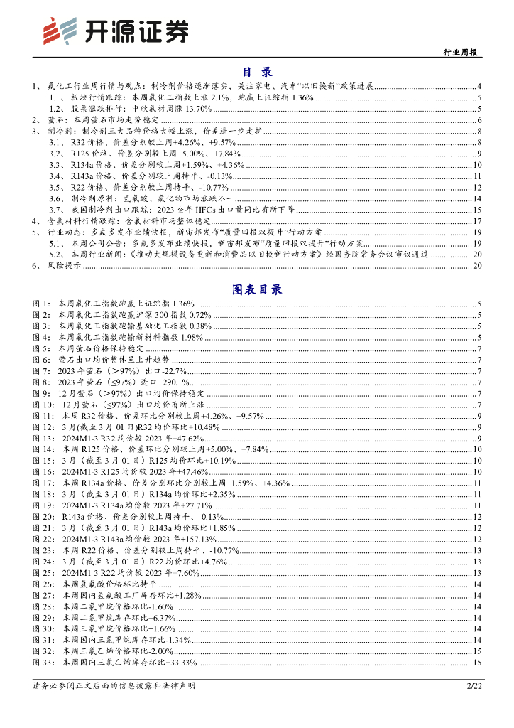 开源证券:氟化工行业周报:制冷剂报价逐渐落实,重视汽车、家电等“以旧换新”政.pdf