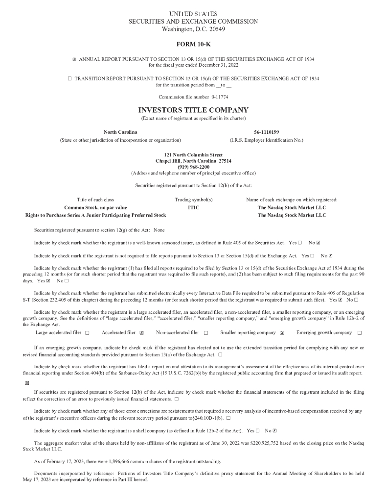 Investors Title Company(ITIC)2022财年年度报告(英文版).pdf