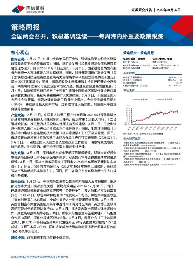 国信证券:每周海内外重要政策跟踪:全国两会召开,积极基调延续-260306.pdf
