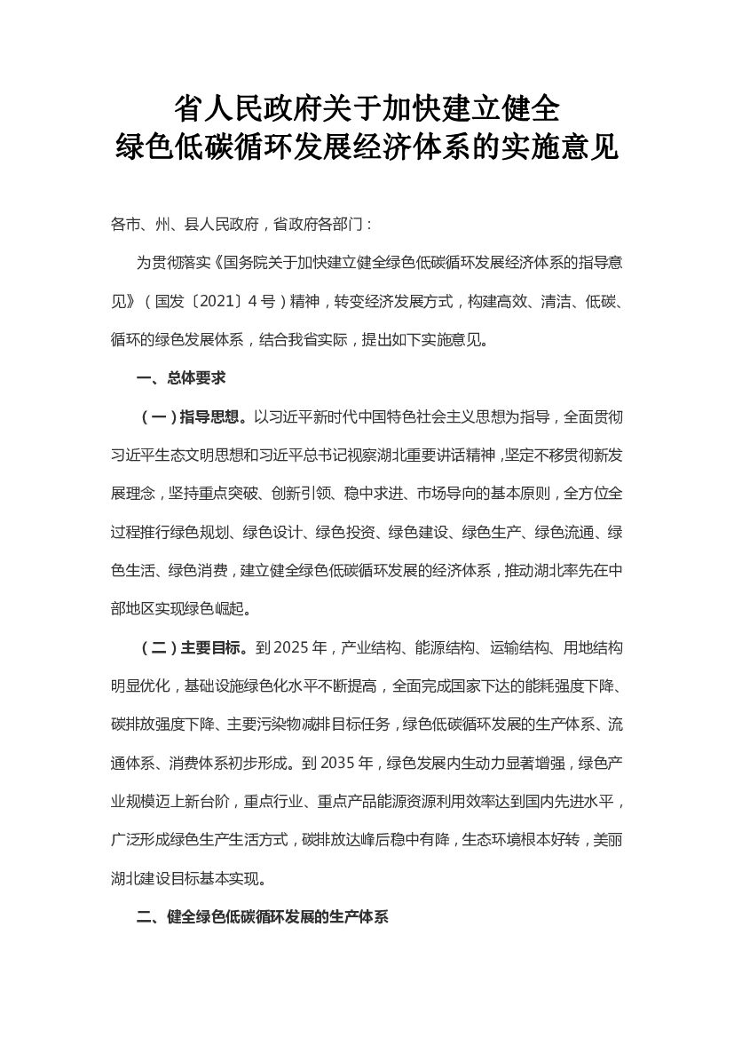 湖北省人民政府关于加快建立健全绿色低碳循环发展经济体系的实施意见.pdf