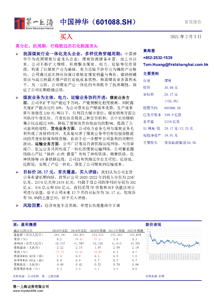 第一上海证券:中国神华(601088)-高分红,抗周期,行稳致远的石化能源龙头.pdf