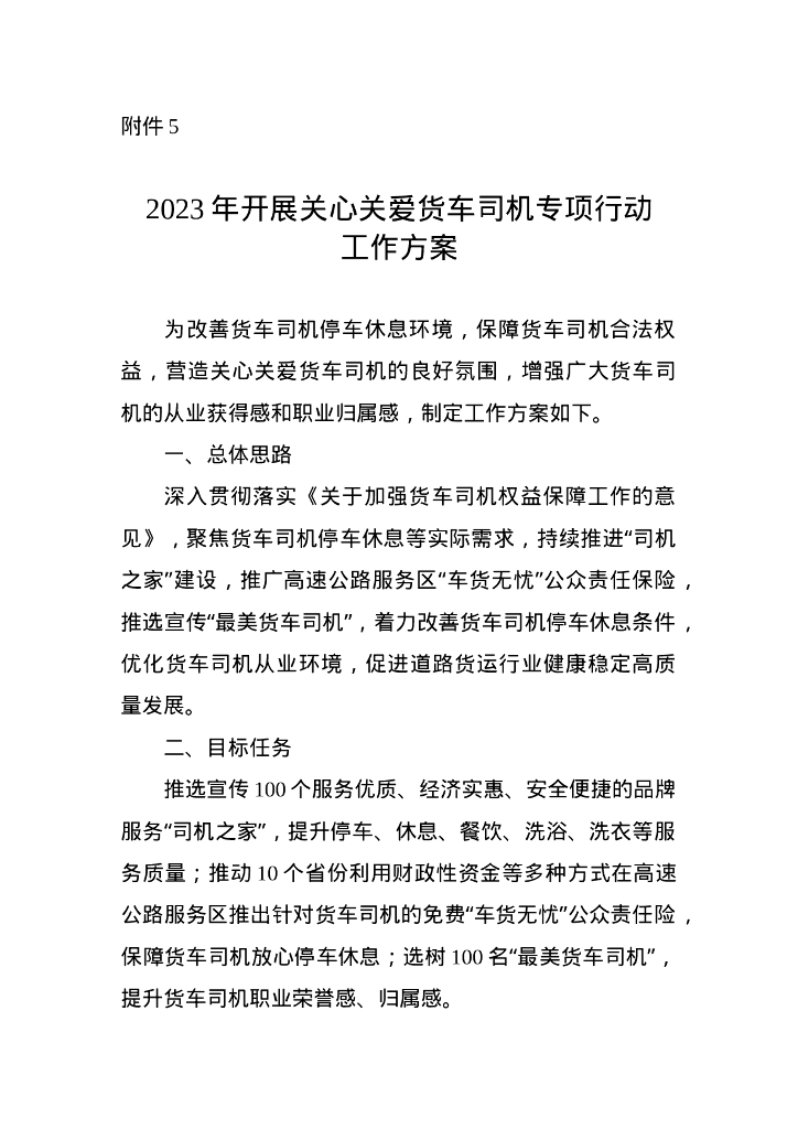 2023年开展关心关爱货车司机专项行动工作方案.doc