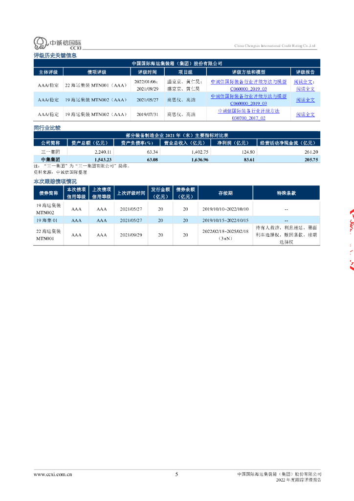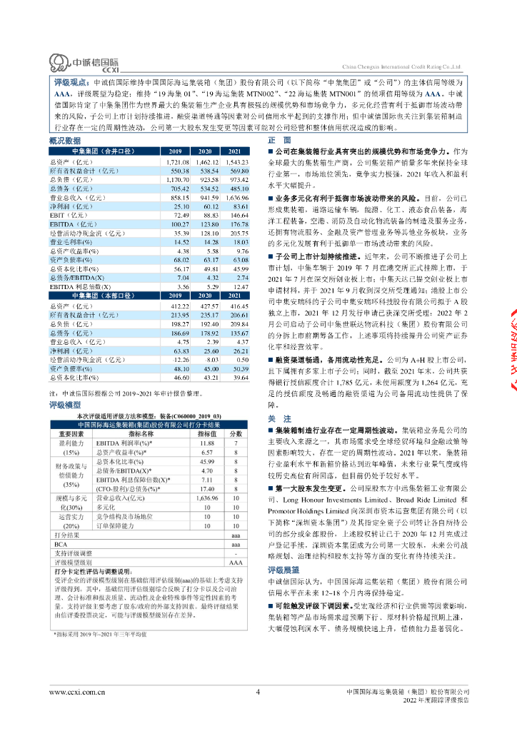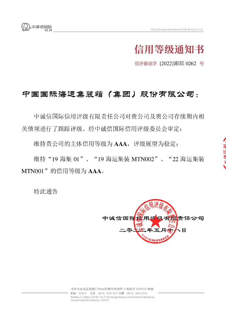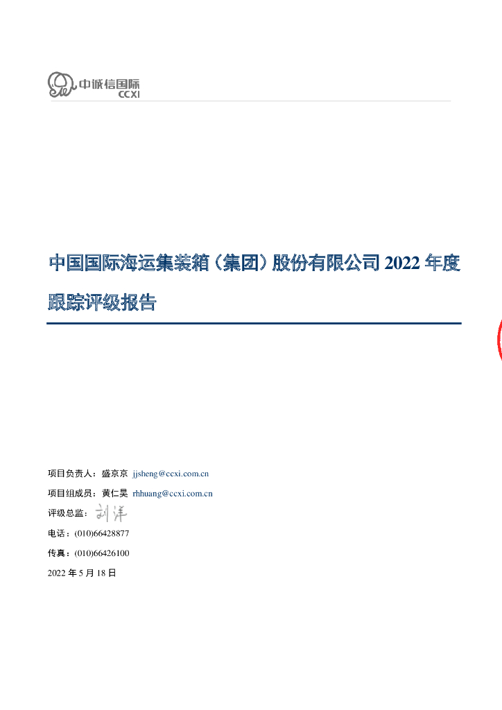 中诚信:中国国际海运集装箱(集团)股份有限公司2022年度跟踪评级报告.pdf
