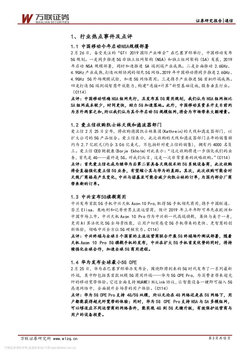 万联证券:通信行业周观点:5G闪耀MWC,中移动将启动5G规模组网.pdf