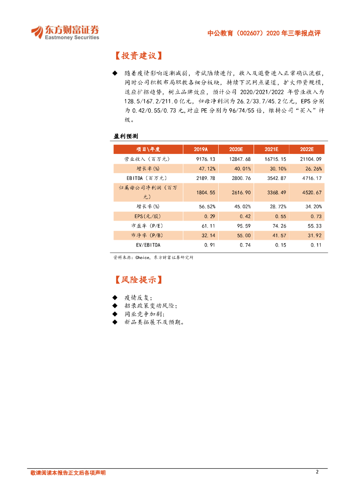 东方财富证券:中公教育(002607)-2020年三季报点评:Q3业绩高增,持续看好长期成长性.pdf