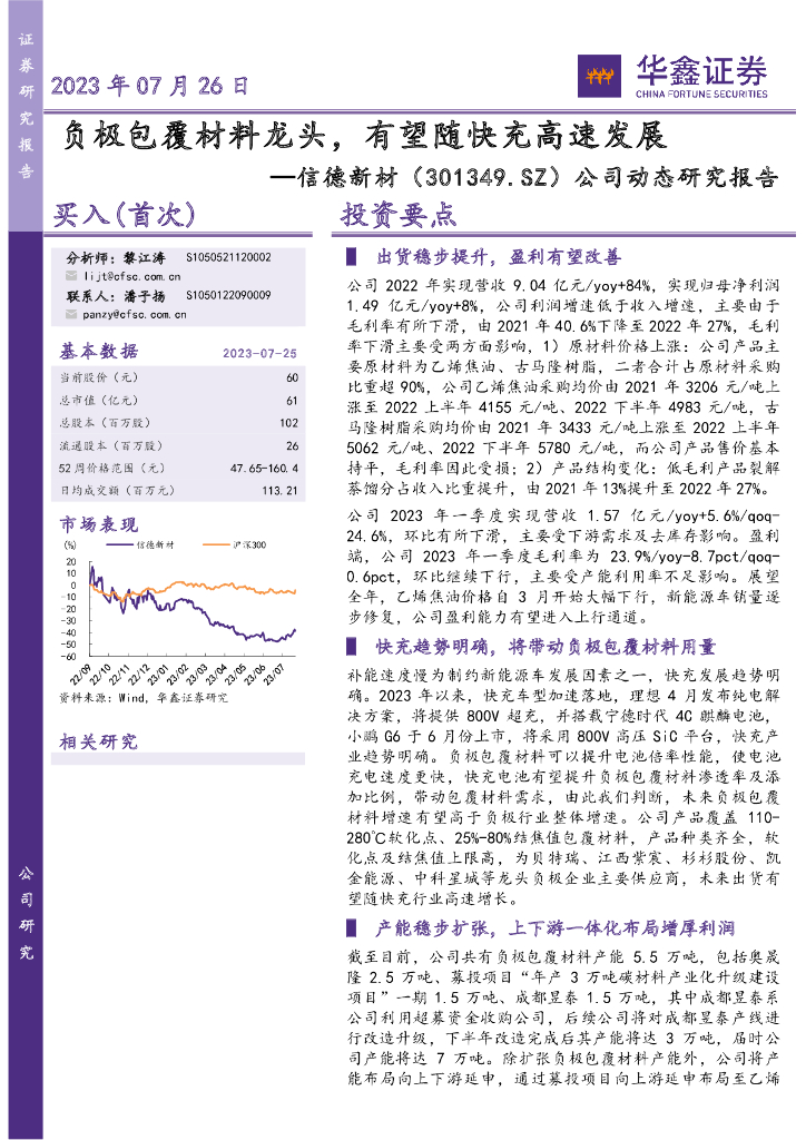 华鑫证券:信德新材(301349)-公司动态研究报告:负极包覆材料龙头,有望随快充高速发展.pdf