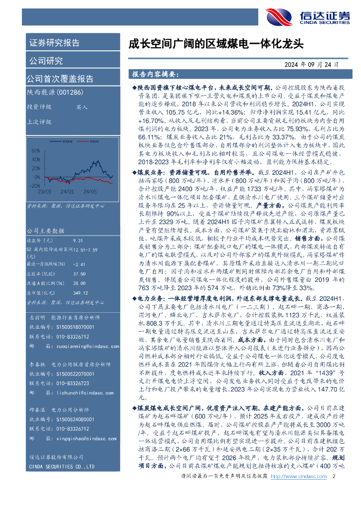 信达证券:陕西能源(001286)-公司首次覆盖报告:成长空间广阔的区域煤电一体化龙头.pdf
