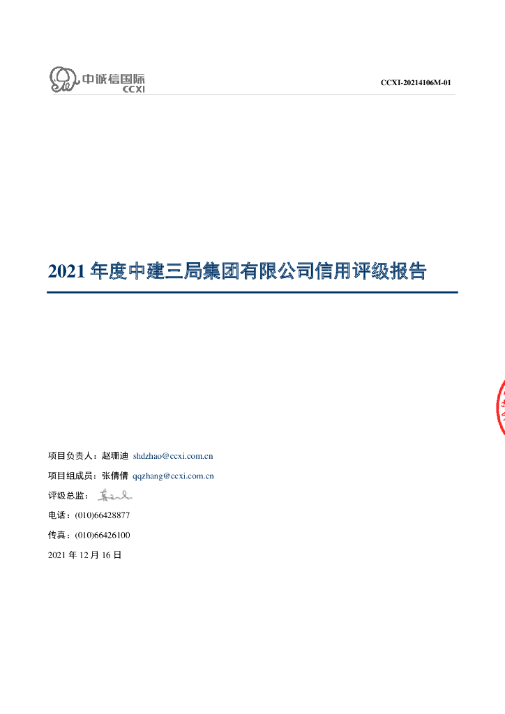 中诚信:中建三局集团有限公司主体信用评级报告及跟踪评级安排.pdf