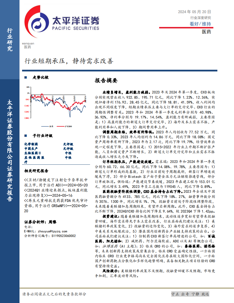 太平洋证券:医药行业深度研究:行业短期承压,静待需求改善.pdf
