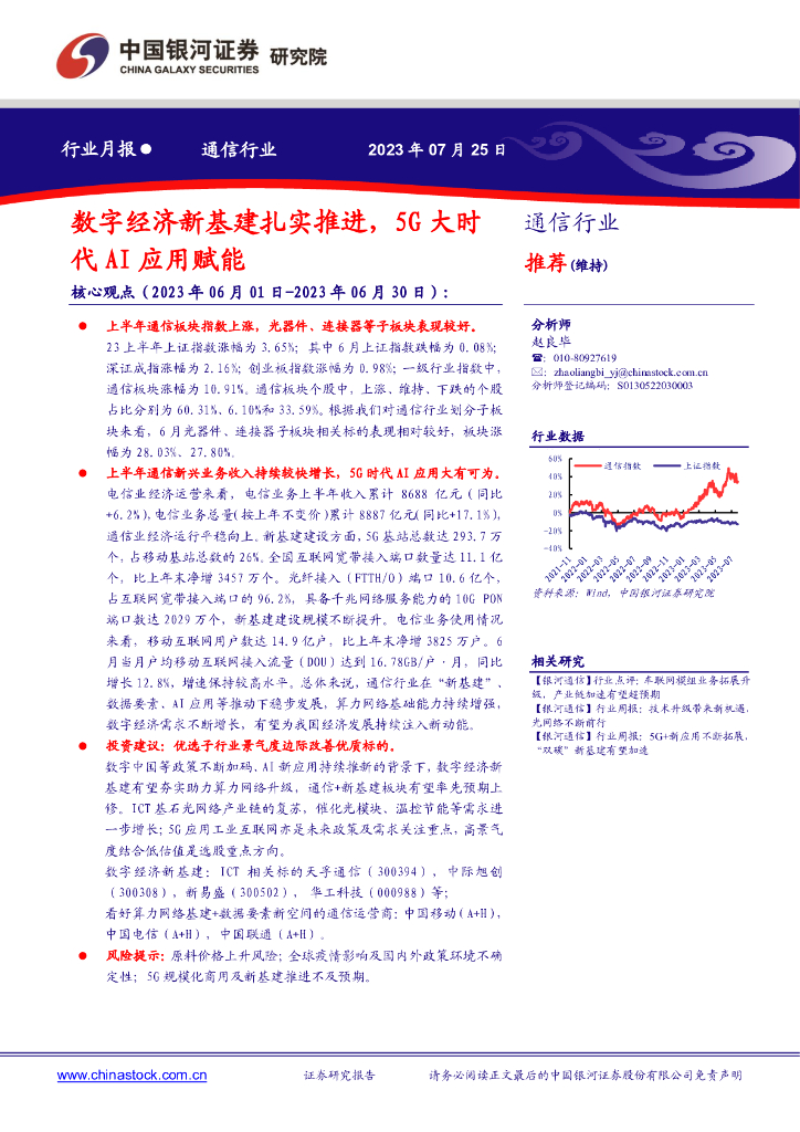 中国银河:通信行业行业月报:数字经济新基建扎实推进,5G大时代AI应用赋能.pdf