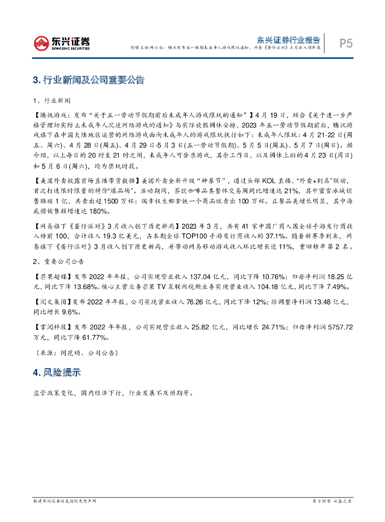 东兴证券:传媒互联网行业:腾讯发布五一假期未成年人游戏限玩通知,网易《蛋仔派对》3月收入创新高.pdf
