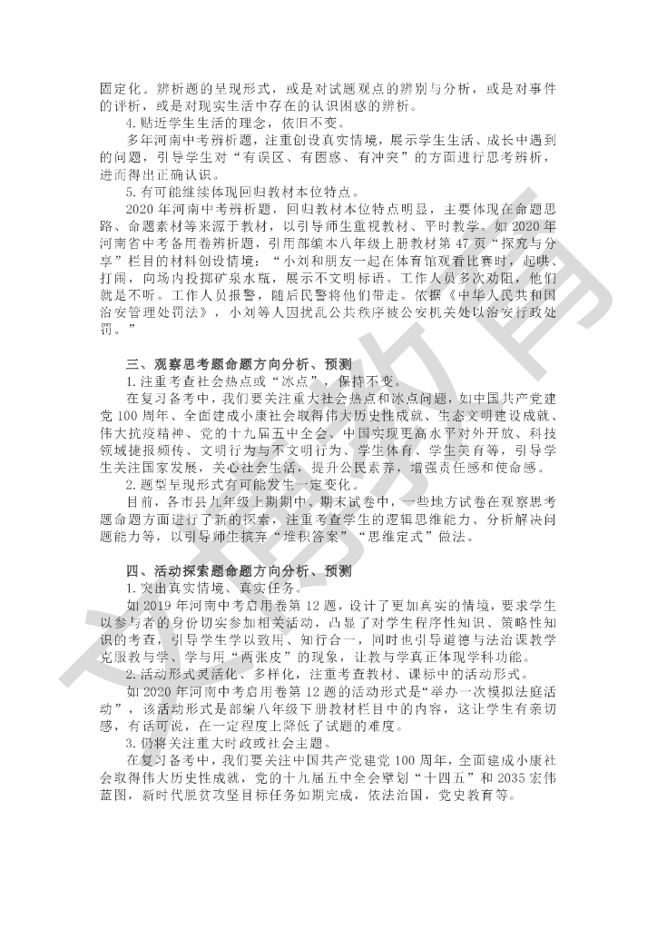 2021年河南省道德法治中考命题方向分析预测 .pdf