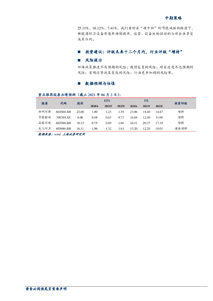 上海证券:2021年环保行业中期策略:业绩回暖,关注碳中和背景下行业估值提升.pdf