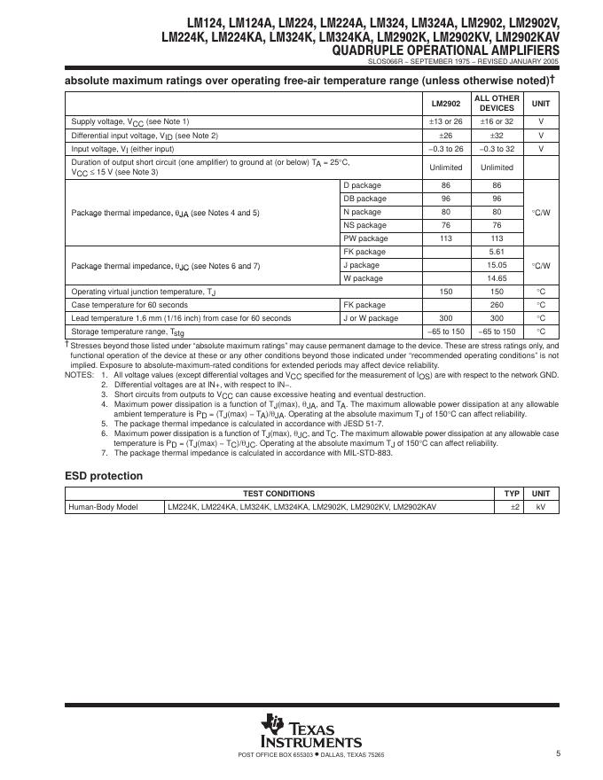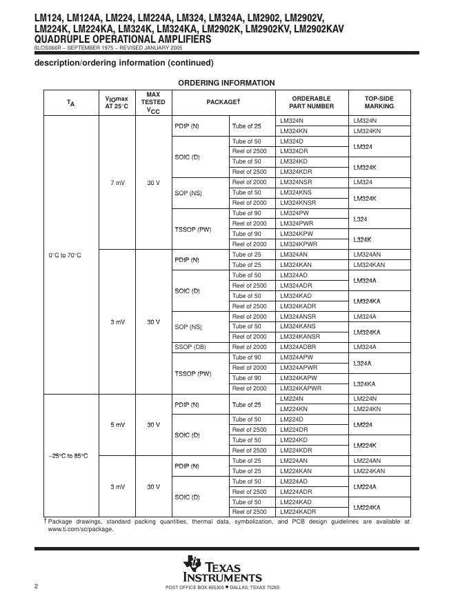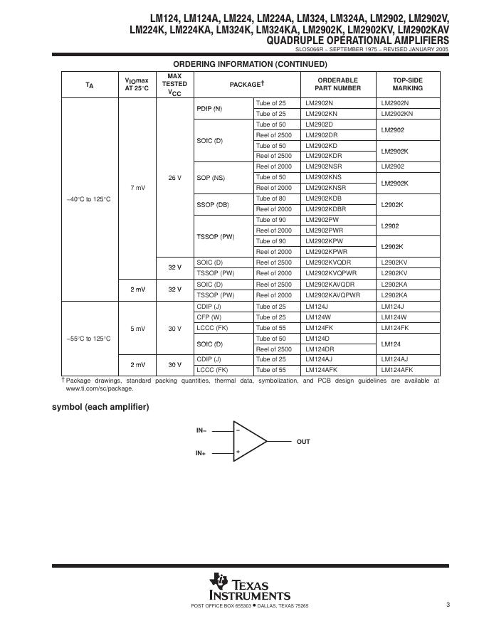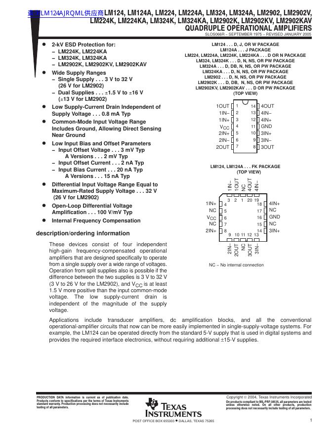 TEXAS INSTRUMENTS LM124, LM124A, LM224, LM224A LM324, LM324A, LM324Y, LM2902, LM2902Q QUADRUPLE OPERATIONAL AMPLIFIERS 数据手册.pdf