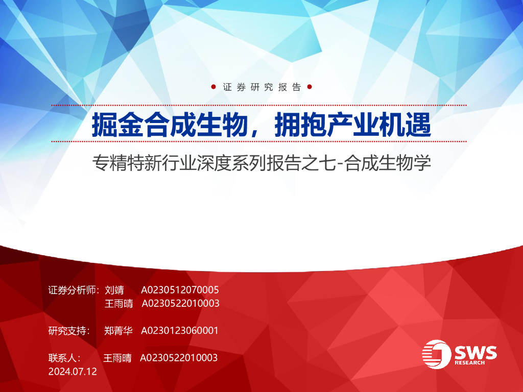 海申银万国证券:专精特新行业深度系列报告之七-合成生物学:掘金合成生物,拥抱产业机遇.pdf