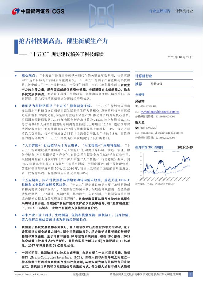 中国银河:计算机行业:“十五五”规划建议稿关于科技解读-抢占科技制高点,催生新质生产力.pdf