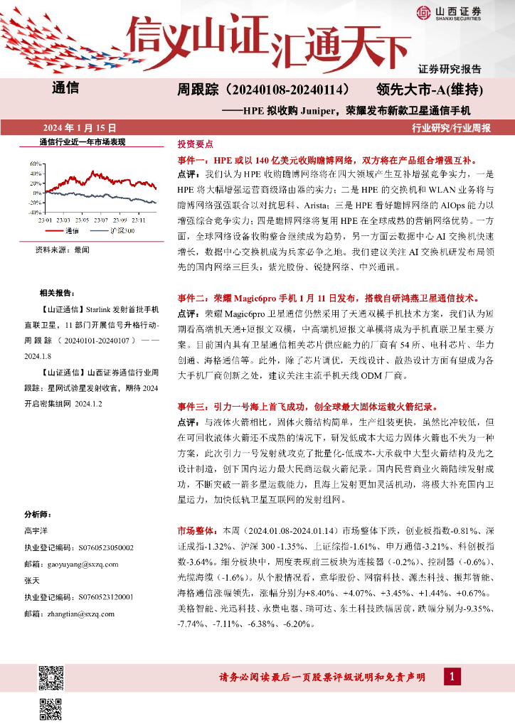 山西证券:通信周跟踪:HPE拟收购Juniper,荣耀发布新款卫星通信手机.pdf